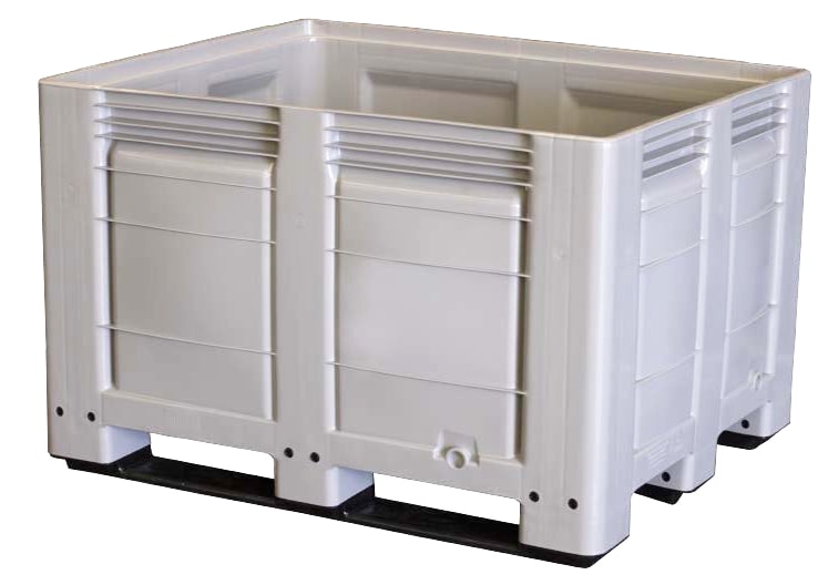 Palot de plástico cerrado medida 1200x1000x780 mm. con 3 patines para volteo. Apilable hasta 10 alturas y 690 litros de capacidad.