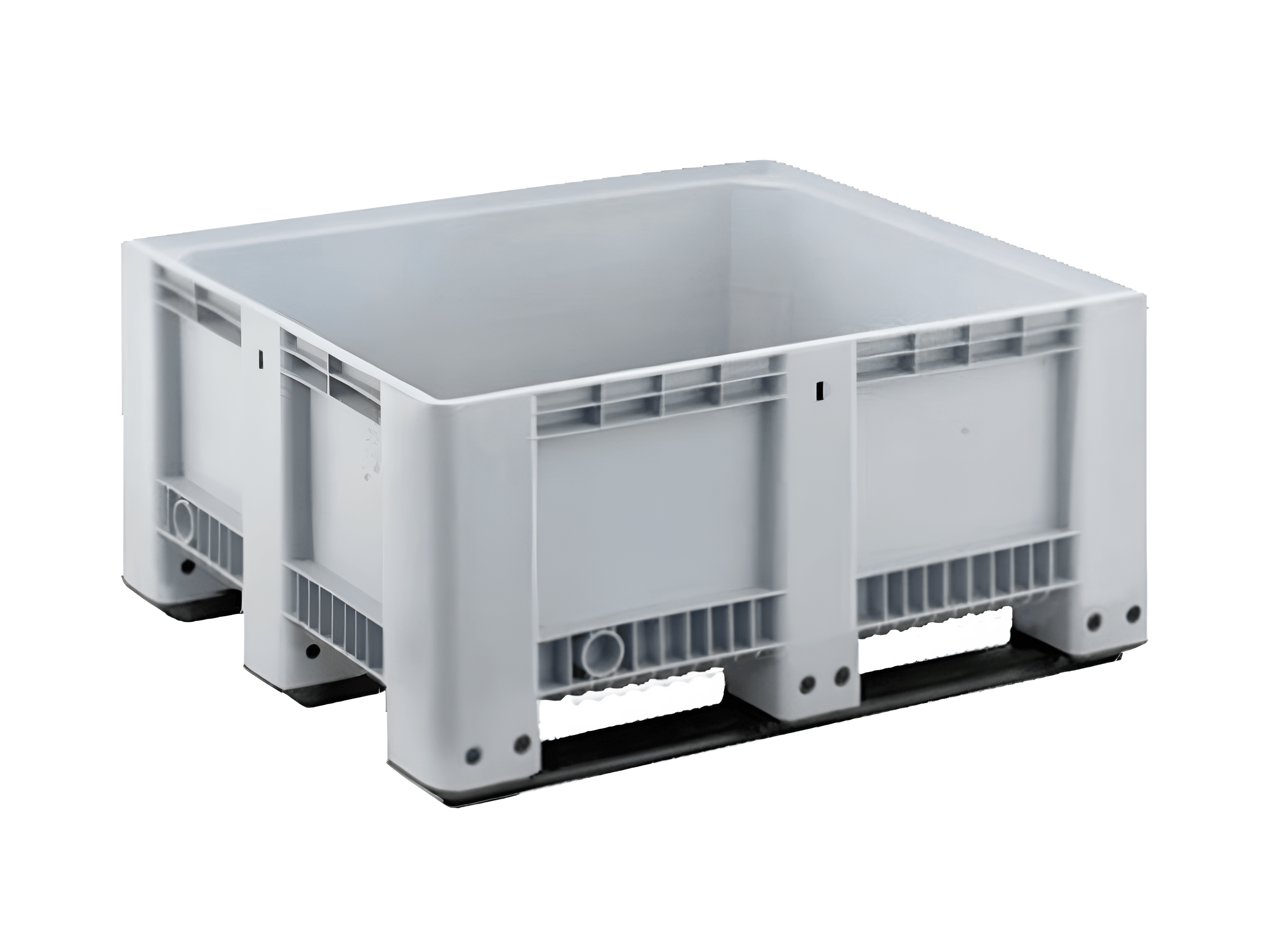 Palot de plástico de medida 1200x1000x580 mm de paredes y fondo liso, con tres patines para su volteo.