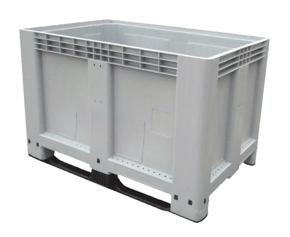 Palot de plástico cerrado de medida 1200x800x800 m. Paredes y fondo liso con dos patines para voltear. Apto para uso alimentario. Capacidad 525 litros.