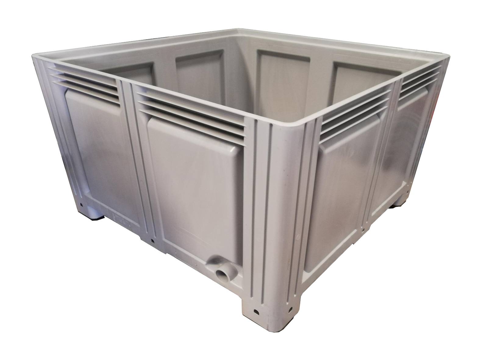 Palot de plástico cerrado de medida 1200x1200x760 mm Apilable de paredes y fondo liso con cuatro pies. Capacidad de 770 litros.