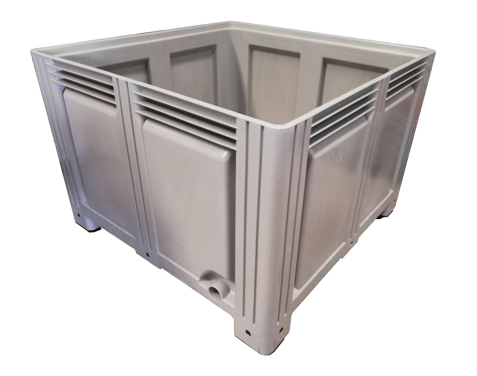 Palot de plástico de medida 1200x1200x850 mm Paredes y fondo liso, con 910 litros de capacidad y apilable hasta 10 alturas.