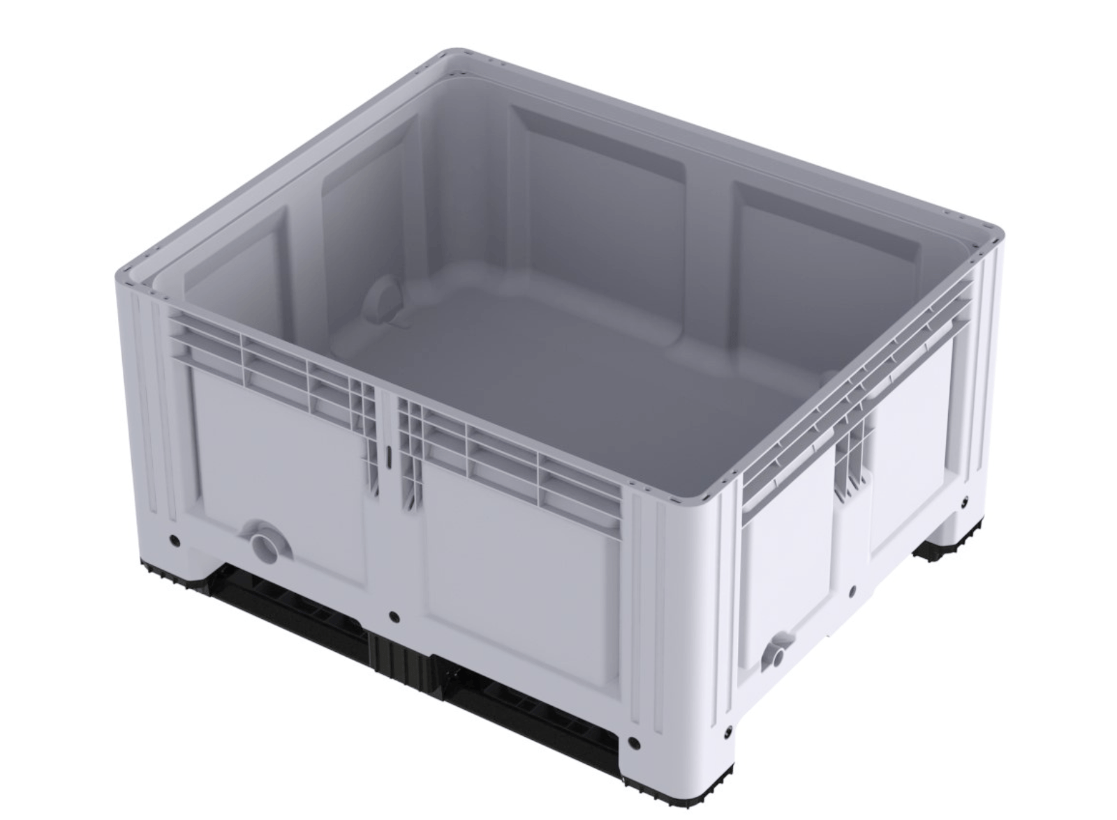 Palot de plástico de 1200x1000x630 mm. Paredes y fondo liso, apilable con 2 patines para su volteo.