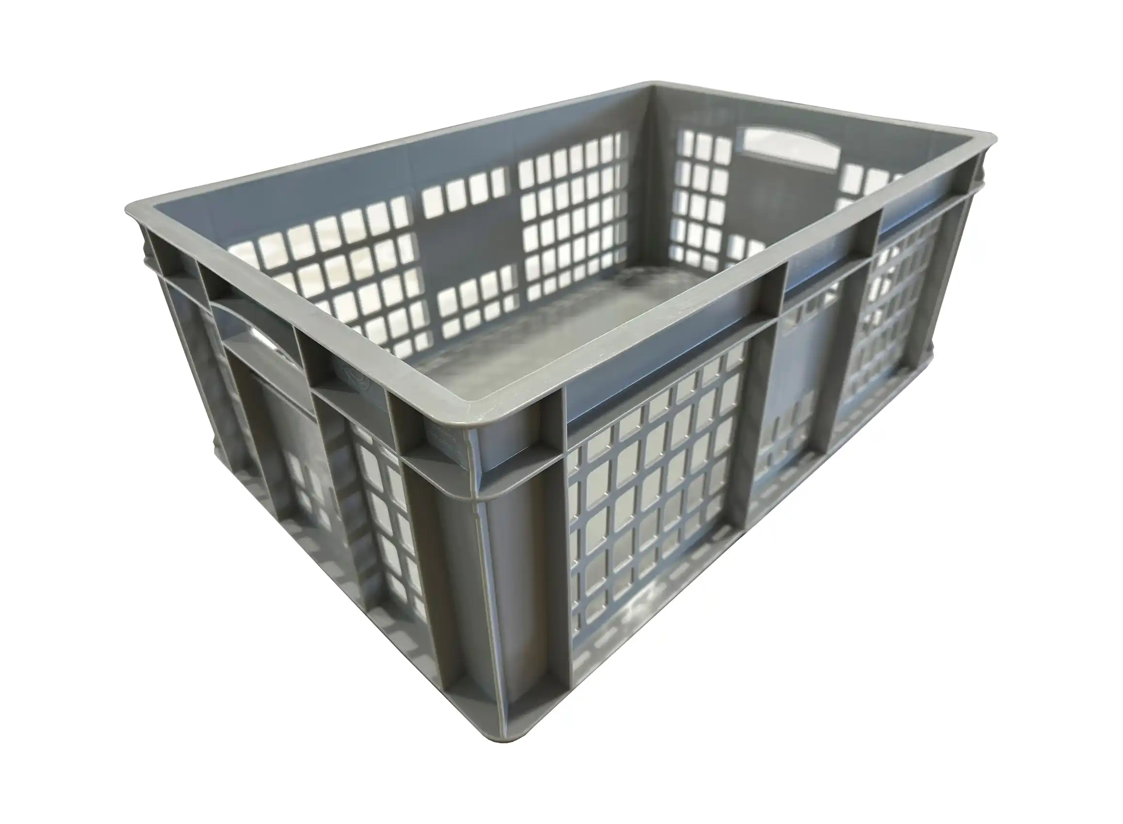Su diseño combina paredes perforadas para una óptima ventilación con un fondo liso, ideal para proteger el contenido y facilitar la limpieza.