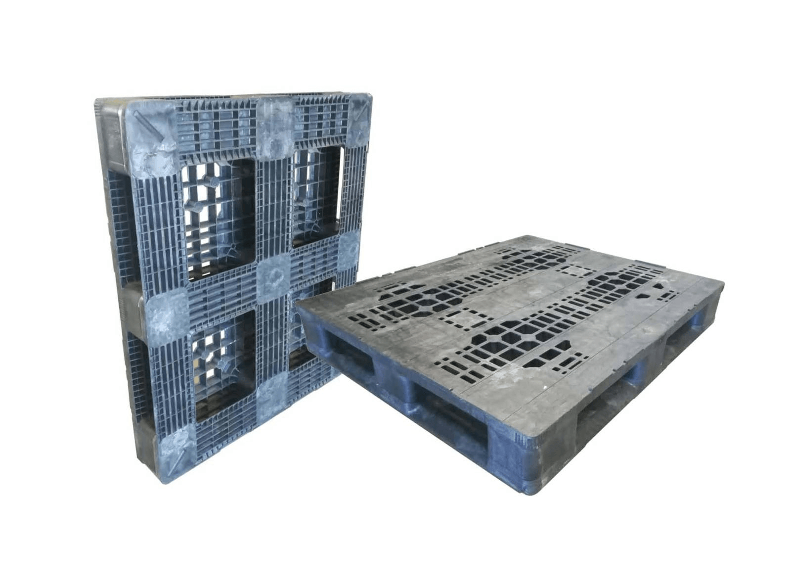 Palet de plástico de 1200×1000 mm base perforada con 6 patines. Palet pesado de 25,6 kilos, carga en estática de 7.000 kilos y 1.200 kilos en estantería.
