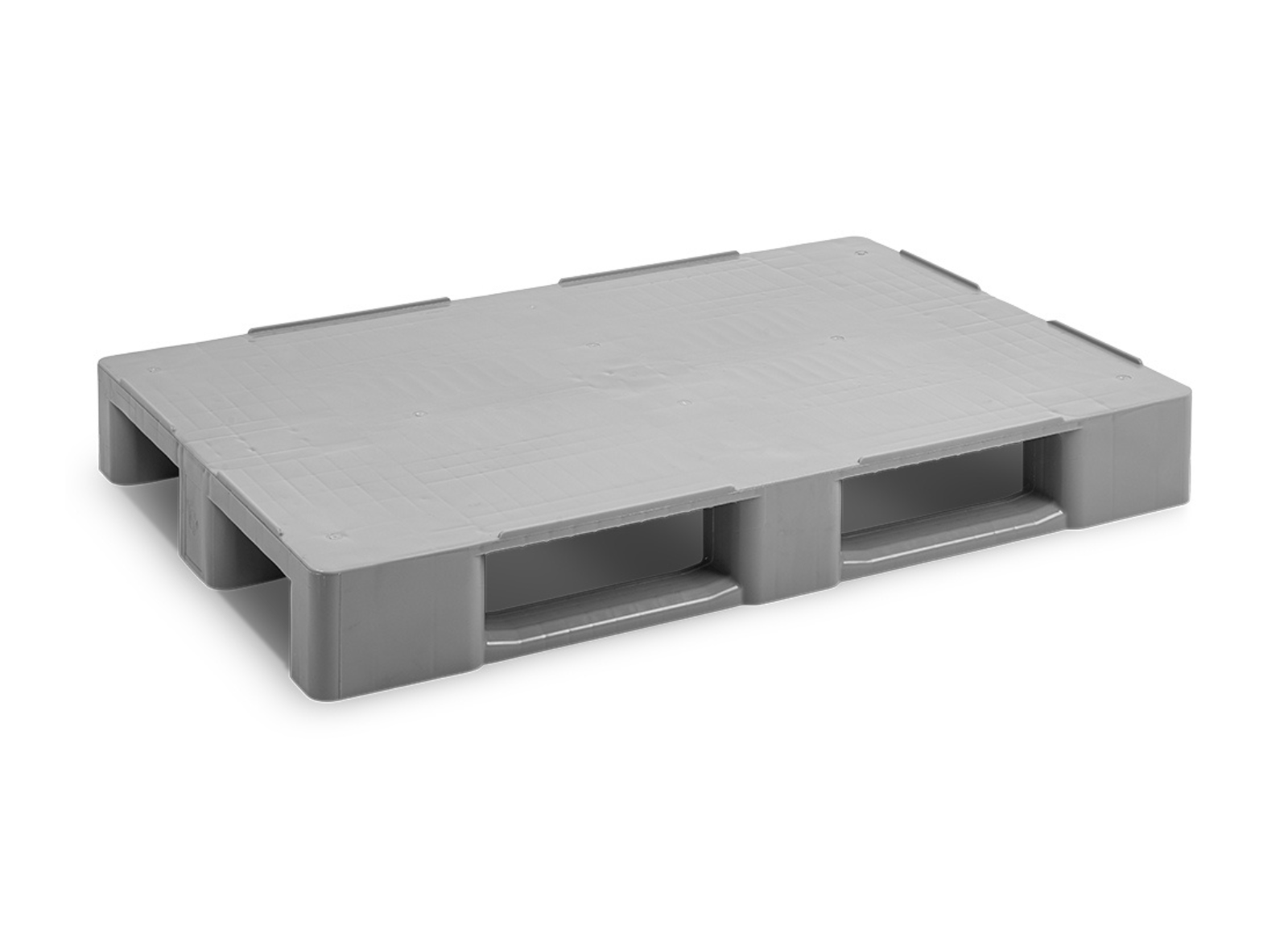 Palet higiénico 1200×800 mm base lisa con tres patines, de peso 12,75 kilos, carga en estática 4.000 kilos y 500 en estantería.