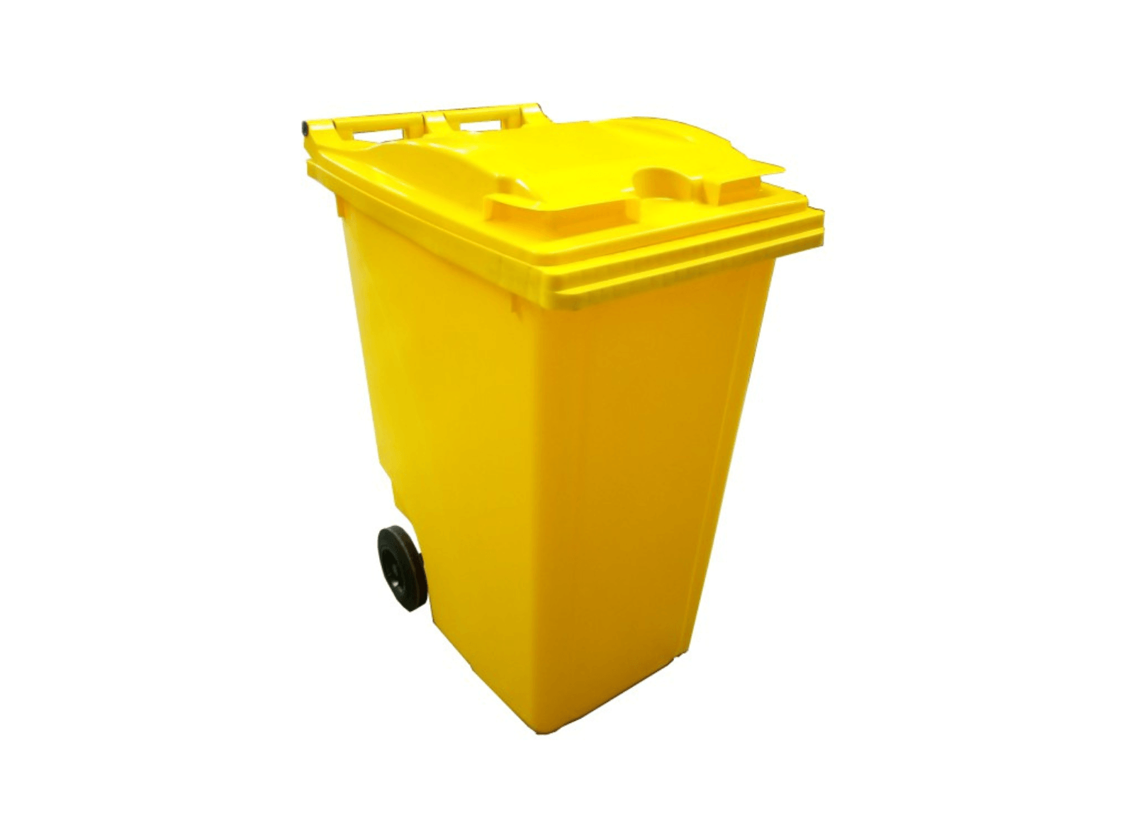 Contenedor de residuos de plástico de 360 litros de capacidad. Resistente a rayos ultravioletas e infrarrojos. Disponible en todos los colores de reciclaje.