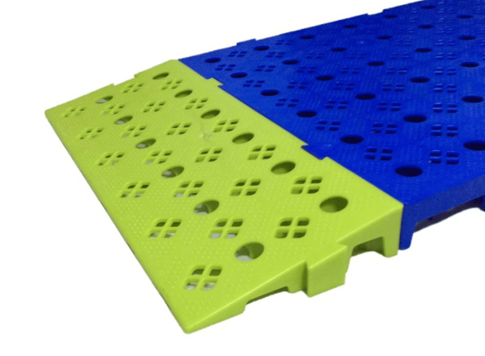 Rampa loseta de plástico de 500×200 mm., para facilitar el acceso con carretilla al resto la superficie instalada. Fabricada con polietileno 100% reciclable.