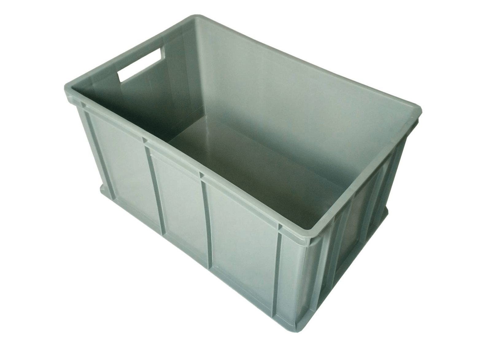 Caja de plástico lisa de medida 600x400x320 mm Apilable de 63 litros de capacidad y 3.040 g. de peso. Fabricada con polietileno.