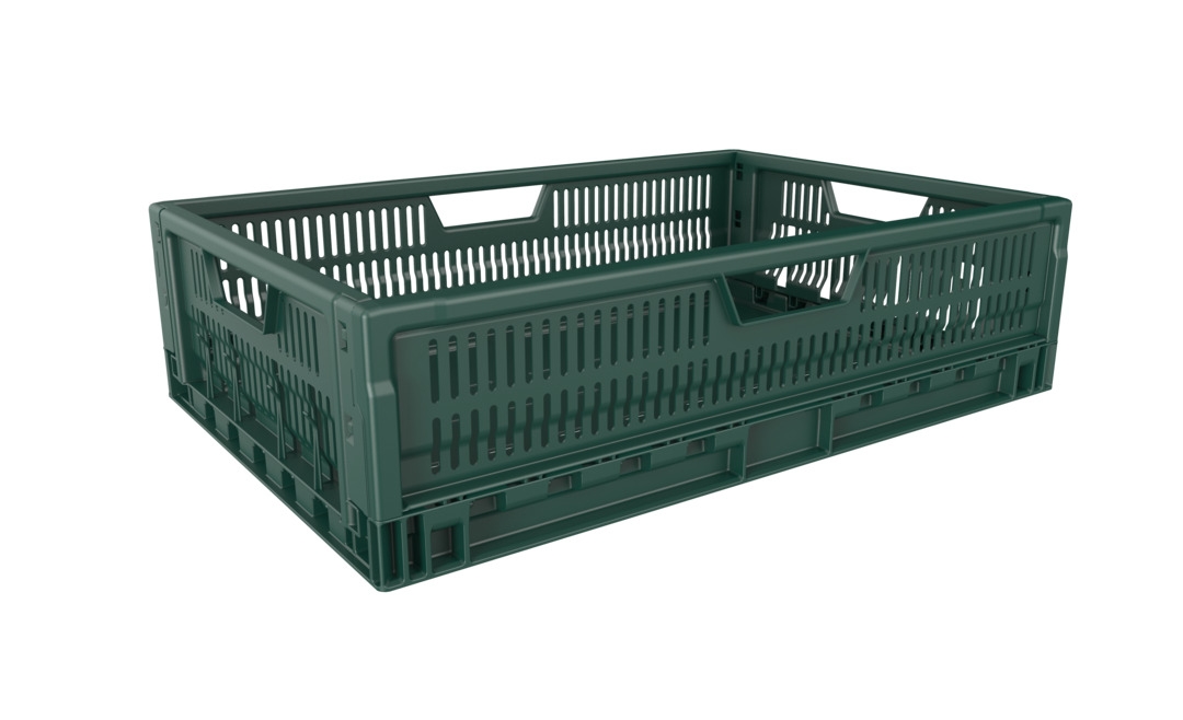 Caja plegable de plástico de medida exterior 600x400x165 mm. de 1.780 gramos de peso.